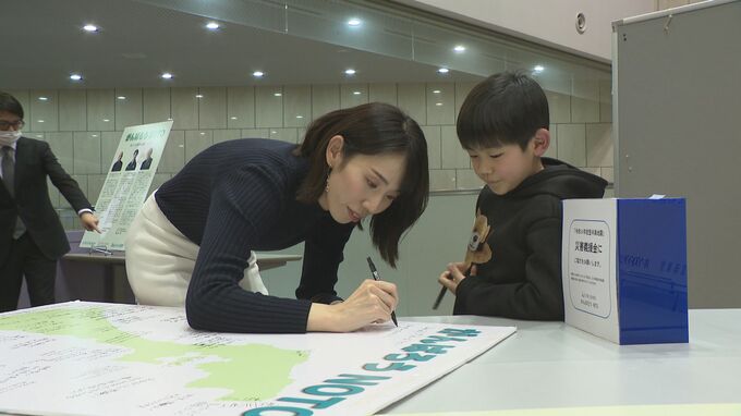 またロビーにはメッセージボードも置かれ、来場者が被災地へとエールを送っていました。メッセージボードを書いた観客からは「一緒に頑張ろうと書きました」と言った声や「音楽の力は生きていく上で必要だと思うので少しでも被災者のエネルギーになれば」と言った声が聞かれました。