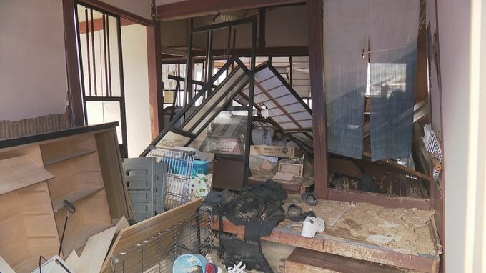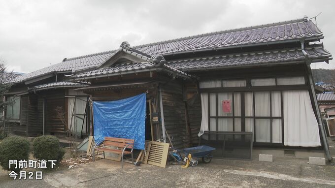 1月1日の地震で被災した門前町道下の自宅は、応急危険度判定で3段階のうち最も危険度が高い「立ち入り危険」の赤紙が貼られていました。