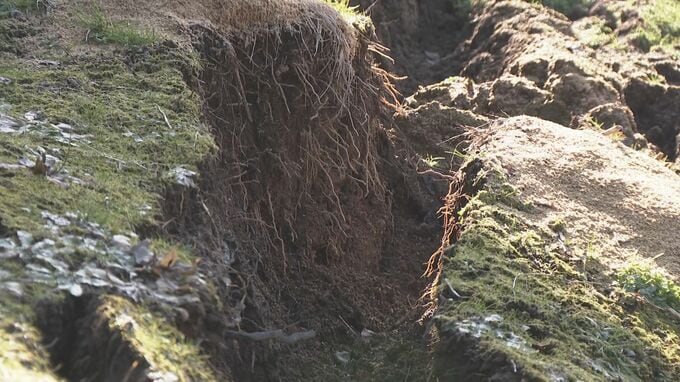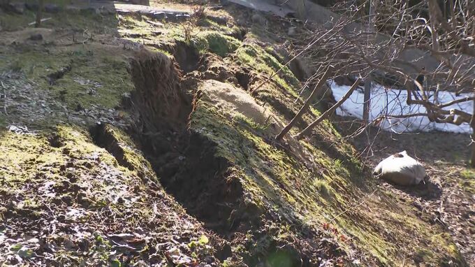 地区に暮らす目久田睦雄さんは、自宅の土地が隆起し近くに2メートルを超える崖ができました。これまで自宅から見上げていたカキの木が見下ろす形になったといいます。