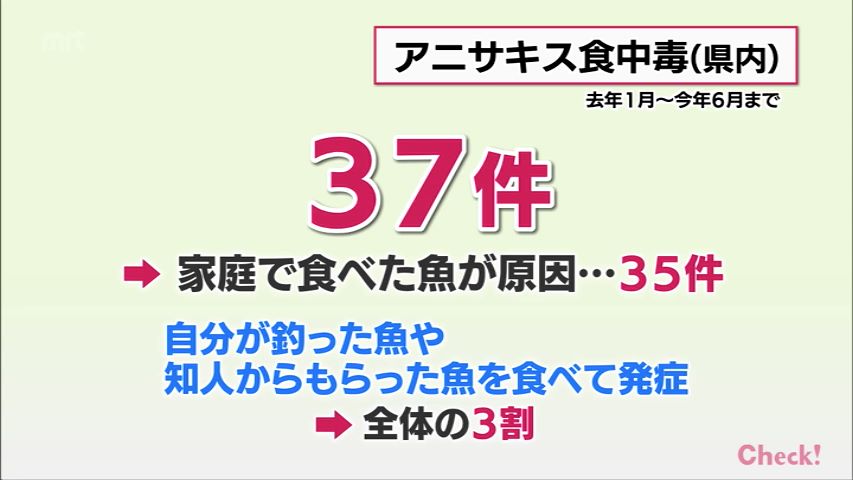 県によると、県内で去年1月から今年6月までの1年半で報告されたアニサキス食中毒は37件。