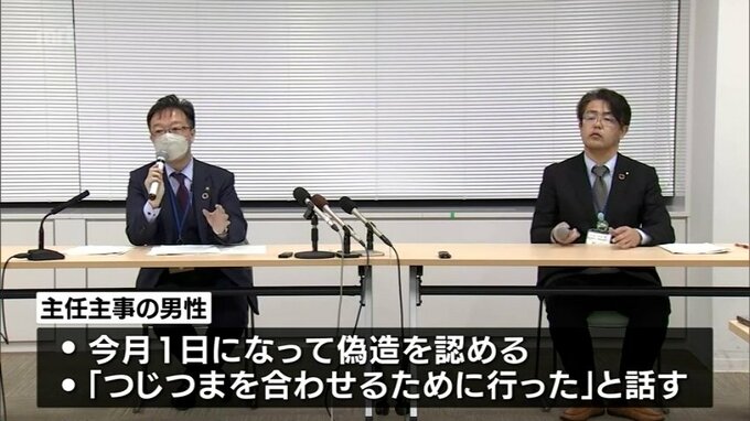 市が担当職員への聞き取りを続けていましたが、男性は今月1日になって偽造を認め、「つじつまを合わせるために行った」と話しているということです。