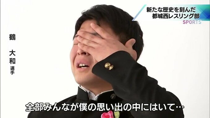 仲間と過ごす最後のホームルームに涙が溢れるのはキャプテンの鶴 大和選手。
