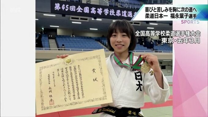切れ味の鋭い内股などを武器に、去年3月の全国大会で悲願の日本一をつかみ取った福永選手。