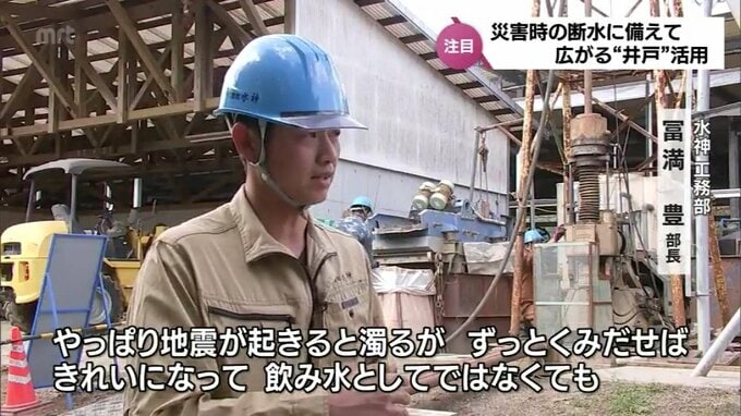 「井戸はまっすぐ入っているので、必ずではないが、横揺れで一緒に動くので、縦もなので影響を受けにくい。地震が起きると濁るが、ずっと汲みだせばきれいになって、飲み水としてではなくても、生活用水、トイレとか掃除とかに使える水はできる」