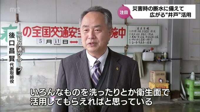 2015年に電動ポンプ式の井戸を設置し、ふだん、タクシーの洗車などで活用しています。