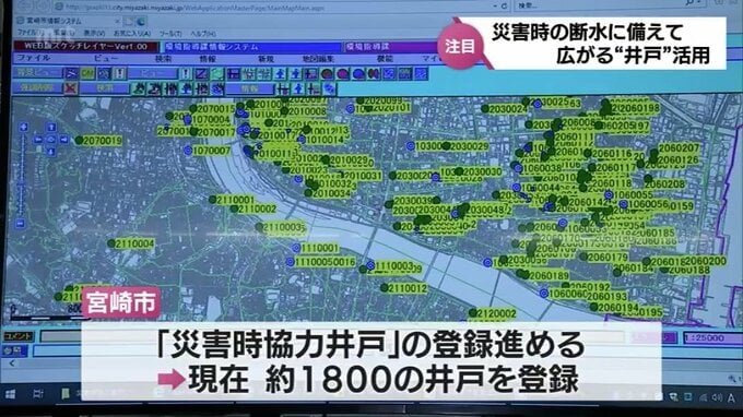 宮崎市は、井戸を持っている家庭や企業から地域住民に生活用水を提供してもらう「災害時協力井戸」の登録を進めていて、現在、市内でおよそ1800の井戸が登録されています。