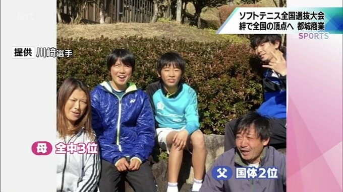 テニス一家の川崎選手は、小学生の時から全国大会の上位に輝くなど活躍をみせていました。
