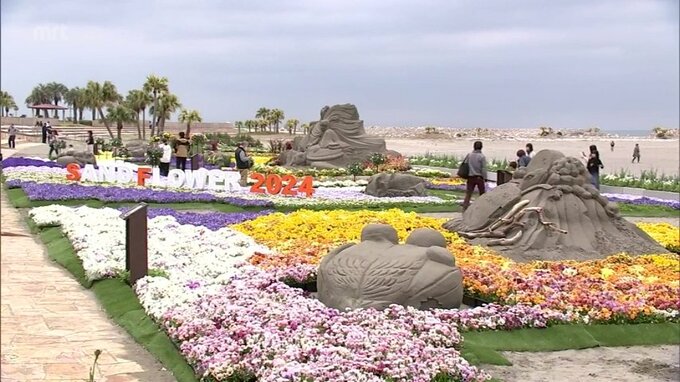 宮崎市でサンドフラワーフェスタ始まる 2024年3月23日(土) 19:17 国内 宮崎市のみやざき臨海公園でサンドフラワーフェスタが始まり、砂の造形と春の花のコラボレーションが訪れた人を楽しませています。このイベントはみやざき公園協会などが毎年開いているもので、サンビーチ一ツ葉に…