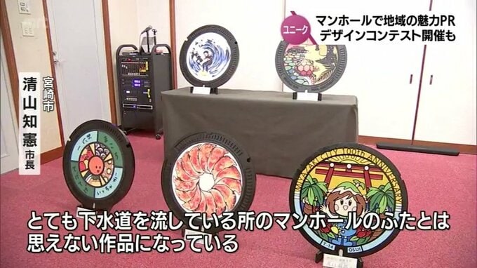 「色とりどりのマンホールふたに囲まれて、とても下水道を流しているところのマンホールのふたとは思えないような作品にになっています」