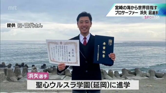 浜矢選手は、3年前、サーフィンの活動に協力的だった延岡市の聖心ウルスラ学園に進学。