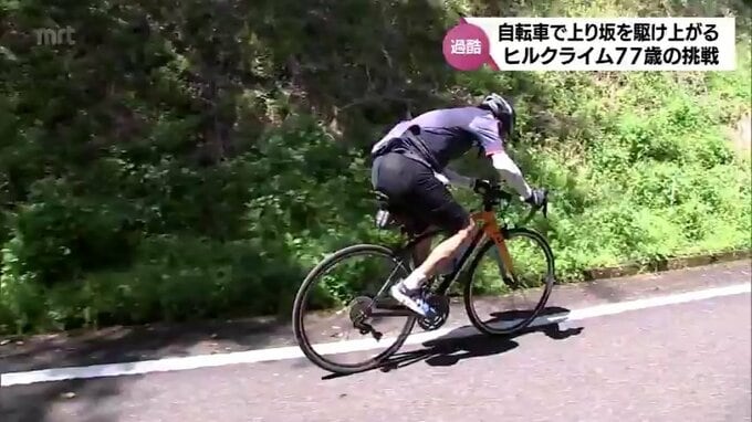 急な坂道にさしかかり、ペダルが重くなりますが、ゴールを目指し懸命にこぎ続けます。