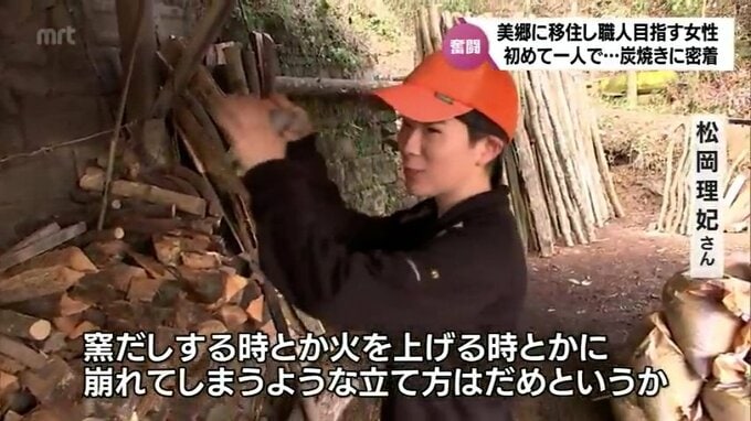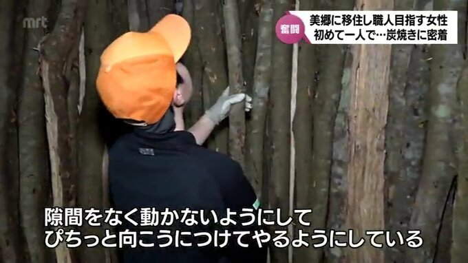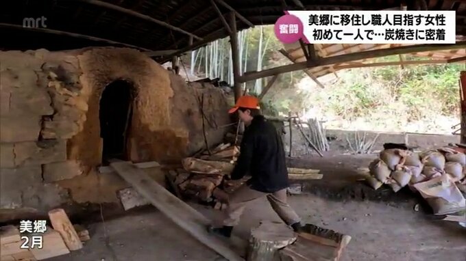 MRTテレビ「Check!」では女性が研修を始めたころに一度紹介しましたが、このほど初めて、1人での炭焼きに挑戦しました。女性の奮闘に密着しました。