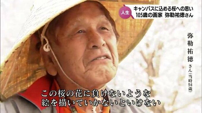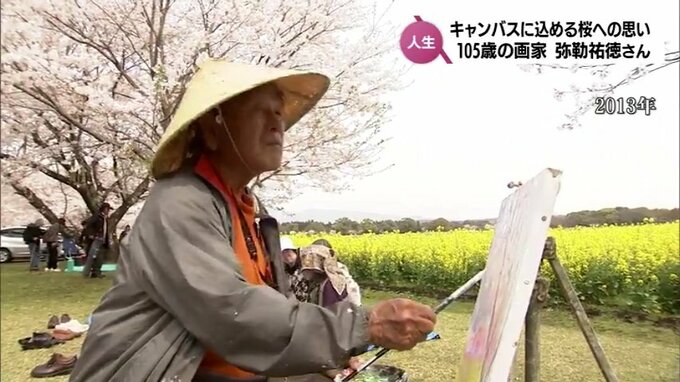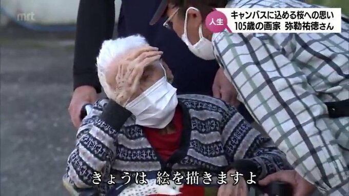 現在、105歳の弥勒さんは、今月、3年ぶりに桜の作品を描き上げました。