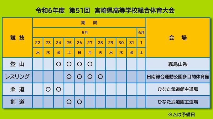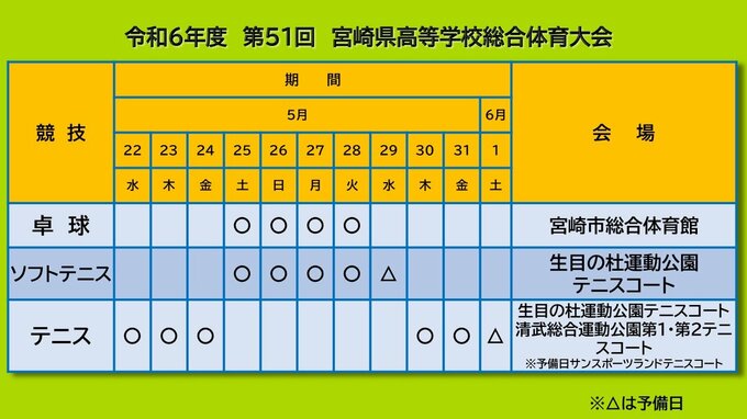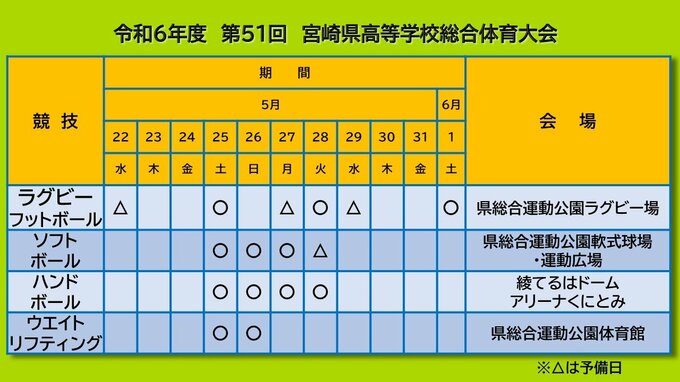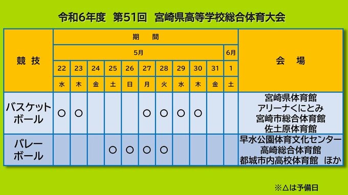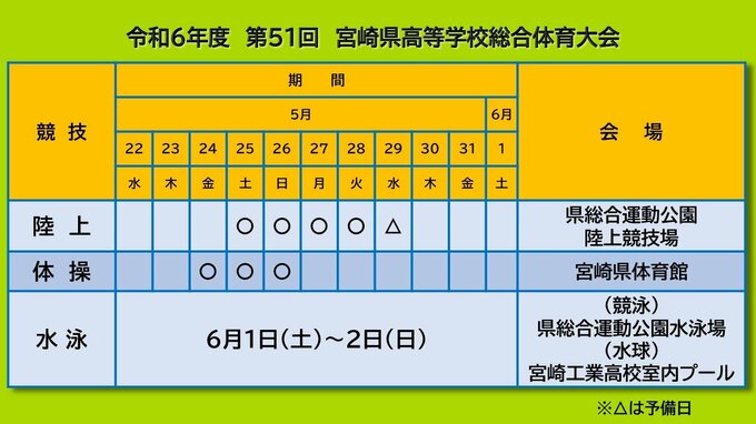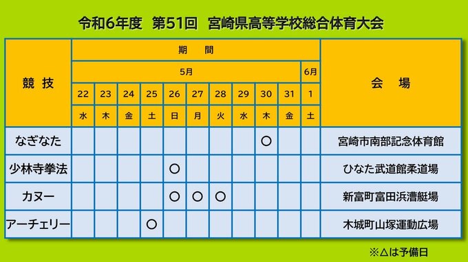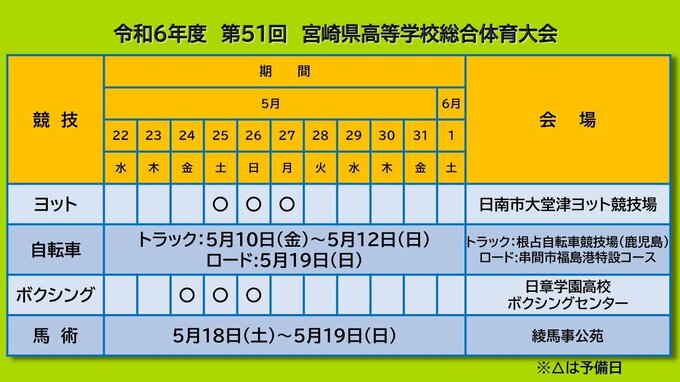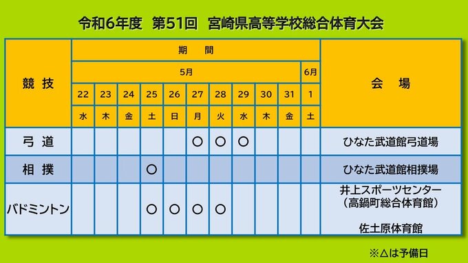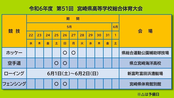高校生スポーツの祭典「宮崎県高校総体」の競技日程と会場が発表されました。