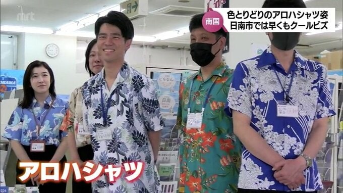 アロハシャツ着用で南国をPR! 日南市の観光担当職員たちのクールビス始まる 2024年4月22日(月) 19:00 国内 暮らし・マネー 早くもクールビズが始まりました。宮崎県日南市では南国をPRしようと、市の職員らがアロハシャツを着て業務にあたっています。アロハシャツ姿の職員たち。日南市の観光・クルーズ振興課や市の観光協会が入る日南市…