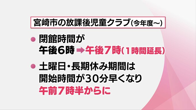 そして、宮崎市では保護者からの要望を受け、今年度から一部の放課後児童クラブの利用時間を延長しました。