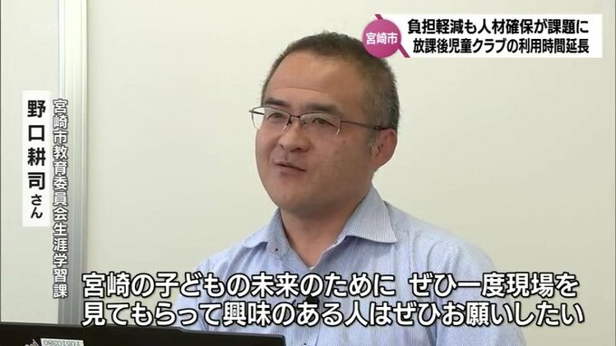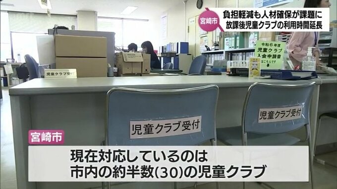 宮崎市は、関係機関と連携しながら人材を確保し、来年度から市内すべての児童クラブで運営時間を延長したいとしています。