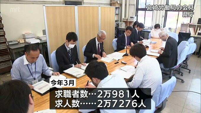 宮崎県内3月の有効求人倍率は1.30倍 「医療・福祉」「宿泊」「運輸業」などは引き続き堅調な求人見込み 2024年4月30日(火) 12:00 国内 宮崎県内の今年3月の有効求人倍率は、前の月と同じ1.30倍となりました。宮崎労働局によりますと、今年3月の求職者数は2万981人、企業の求人数は2万7276人でした。これにより、有効求人倍率は前の月と同じ1.30倍と…