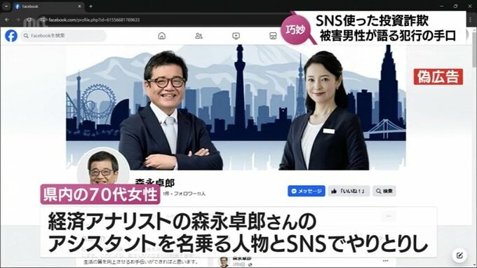 県内でも、70代女性が経済アナリストの森永卓郎さんのアシスタントを名乗る人物とSNSでやりとりした結果、現金2100万円をだましとられる被害が発生しました。