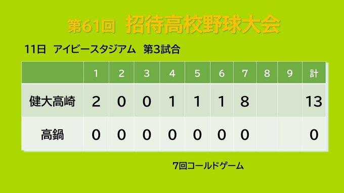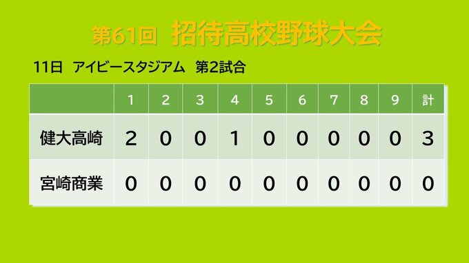 このうち、アイビースタジアムで行われた第2試合では、健大高崎と宮崎商業が対戦。