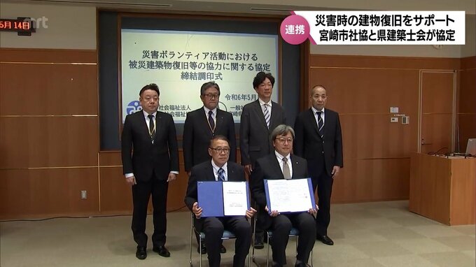 災害発生時 被災建物の復旧などを建築士の専門的助言でより安全に 宮崎市社会福祉協議会と県建築士会が協定 2024年5月14日(火) 19:00 国内 災害時、被災した建物の復旧や片付けを専門的な視点からより安全に行おうと、宮崎市社会福祉協議会と県建築士会が協定を結びました。14日、宮崎市で行われた締結式では、宮崎市社会福祉協議会の佐山幸二会長と県建…