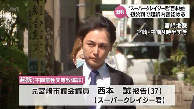 知人女性に性的暴行を加えたなどとして、不同意性交等致傷の罪に問われている、元宮崎市議会議員で「スーパークレイジー君」として知られる西本誠被告の初公判が開かれ、西本被告は「間違いありません」と起訴内容を認めました。