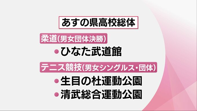 また、ひなた武道館では、柔道の男女団体の決勝が、テニス競技は生目の杜運動公園と清武総合運動公園で男女団体の準決勝までと男女シングルスが行われます。