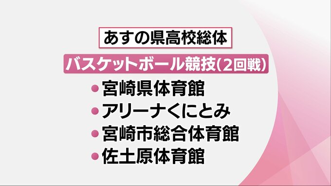 バスケットボール競技の2回戦が、県体育館や宮崎市総合体育館など4つの会場で行われます。