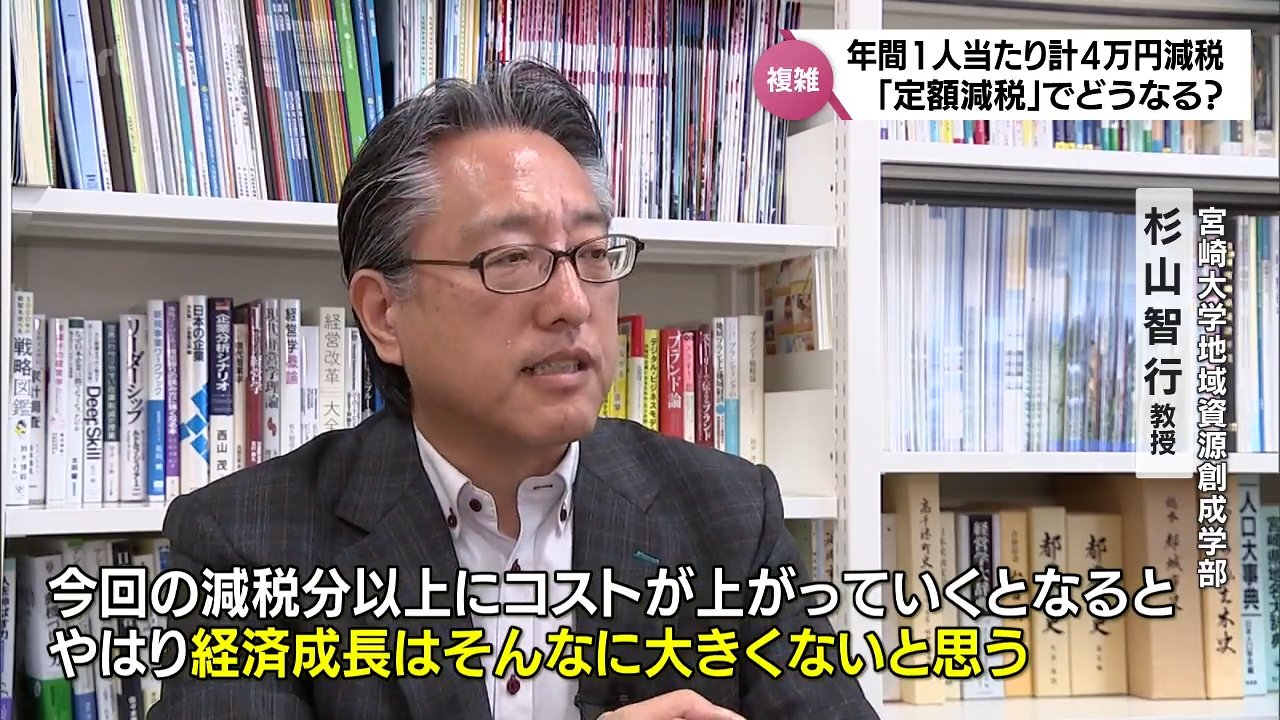しかし、杉山教授は物価高や円安などの影響で消費行動が抑えられている中、「4万円」の減税が景気に効果的に働くかは疑問があると話します。