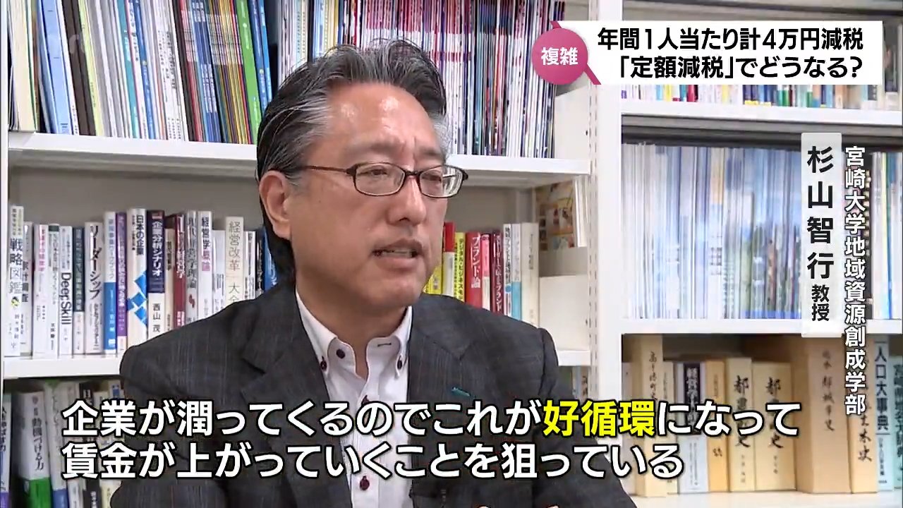 「お金を減税という形で余裕を持たせて、これを購買行動、購入する行動に結び付けていって、個人消費を刺激して、物とかサービスが売れていくと企業が潤ってくるので、これが好循環になって、賃金が上がっていくということを狙っていると思います」