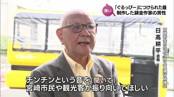 宮崎市の中心市街地を走る、小型の電動バス「ぐるっぴー」に、4月、新しく鐘が取り付けられました。