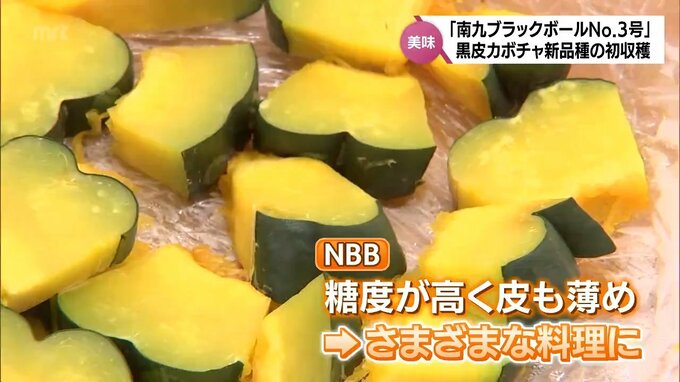 宮崎特産 黒皮カボチャの新品種「南九ブラックボールNo.3号」(通称NBB)の初収穫 2024年6月6日(木) 18:56 国内 話題・グルメ 宮崎特産の黒皮カボチャの新しい品種、「南九ブラックボールNo.3号」の初めての収穫が宮崎市で行われました。(武澤直穂記者)「こちらが、黒皮カボチャの新品種、南九ブラックボールNo.3号です」「南九(なんきゅ…