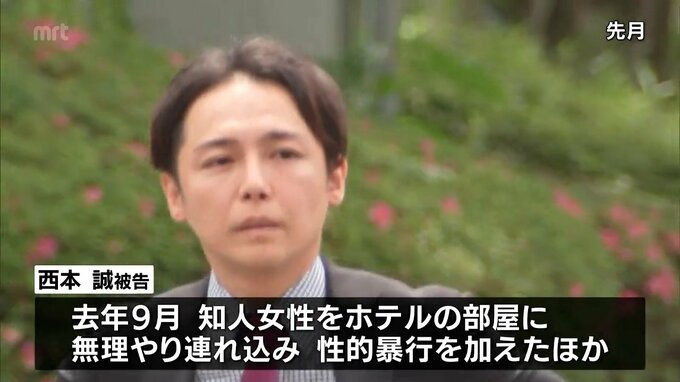 元宮崎市議会議員の西本誠被告は、去年9月、知人女性をホテルの部屋に無理やり連れ込み性的暴行を加えたほか、女性が逃げる際に階段から転落しけがをさせたなどとして、不同意性交等致傷の罪に問われました。