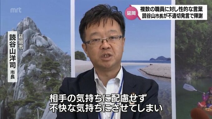 宮崎県延岡市の読谷山市長は、過去の協議中、職員に対し性的な言葉を使い不適切な発言をしたとして陳謝しました。