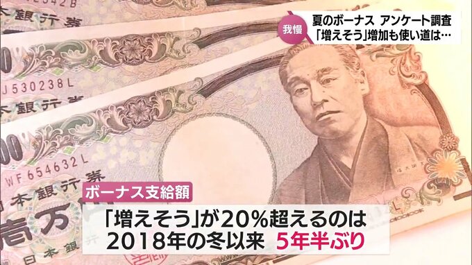 みやぎん経済研究所が行った夏のボーナスのアンケート調査で、「増えそう」と答えた人の割合が20%を超えました。