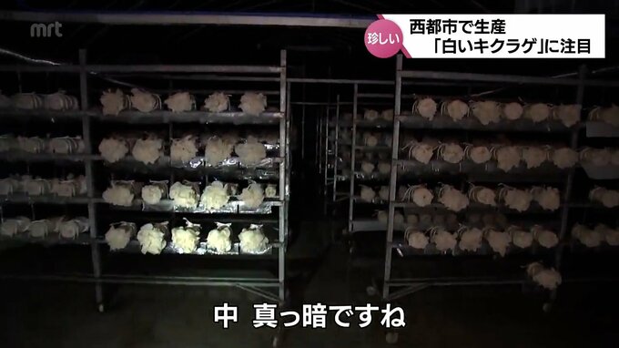 真っ暗なハウスで栽培されていたのは、真っ白なキクラゲ。