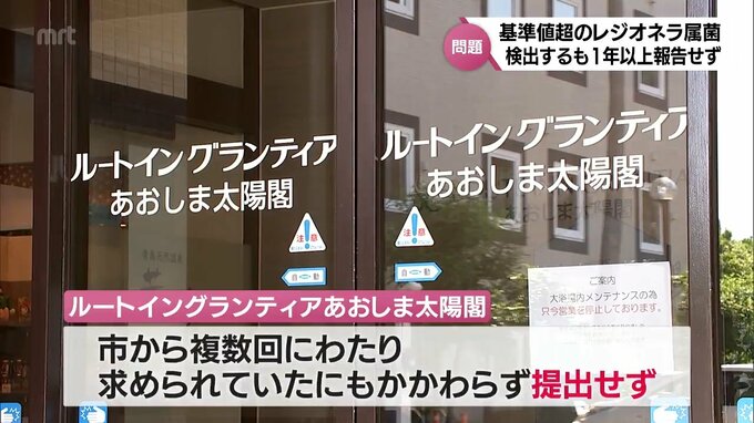 宮崎市青島にある温泉施設「ルートイングランティアあおしま太陽閣」が、去年3月から1年以上、複数回、レジオネラ属菌が検出されていたにもかかわらず、保健所への報告を行っていなかったことが分かりました。