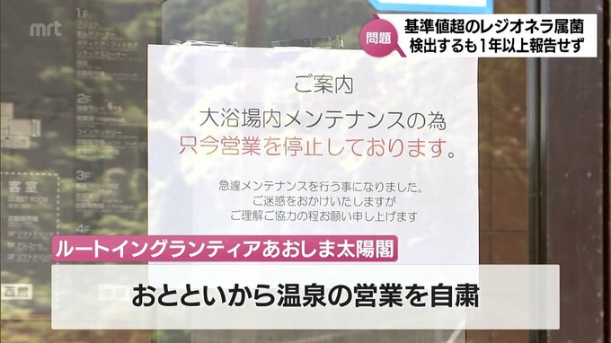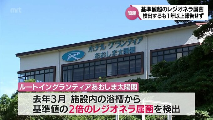 宮崎市の温泉施設「ルートイングランティアあおしま太陽閣」は、去年3月、施設内の浴槽から基準値の2倍のレジオネラ属菌を検出。