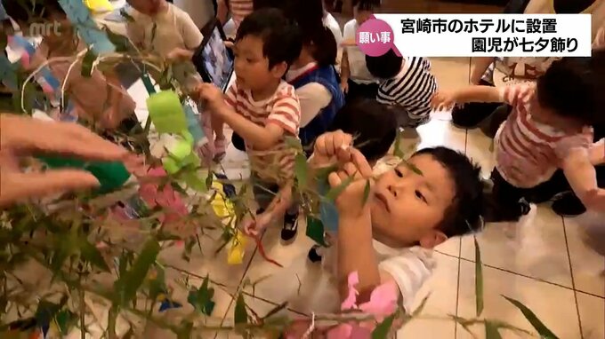 七夕を前に 宮崎市のホテルに地元の園児たちが作った七夕飾りが設置 2024年6月21日(金) 19:00 国内 来月の七夕を前に、宮崎市のホテルでは、地元の園児たちが作った七夕飾りが設置されました。21日は、宮崎市にある宮崎スーパーホテル宮崎天然温泉に、にじの木保育園の園児20人が訪れ、七夕飾りの飾り付けを行いま…