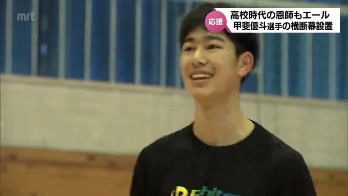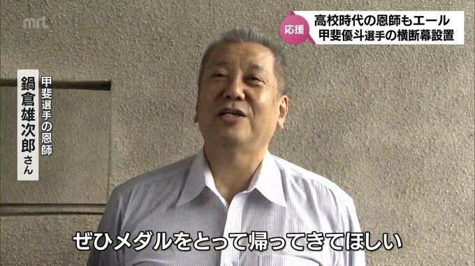 日南市にはオリンピックでの活躍を祈る横断幕が掲げられ、高校時代の恩師がエールを送りました。