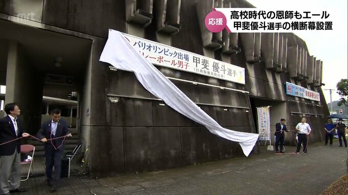日南市にはパリオリンピックでの甲斐選手の活躍を応援しようと横断幕が掲げられ、除幕式がありました。