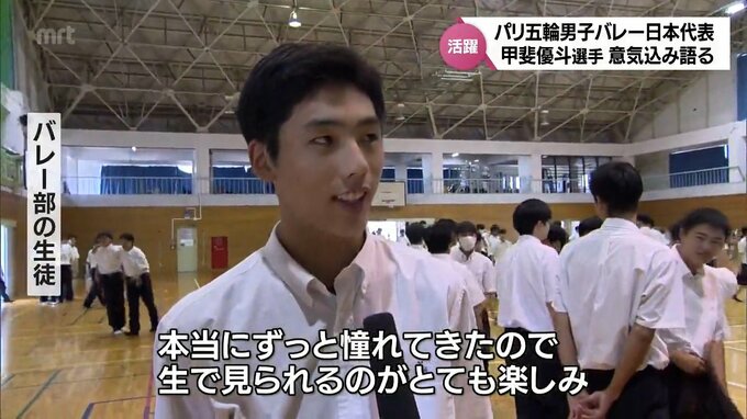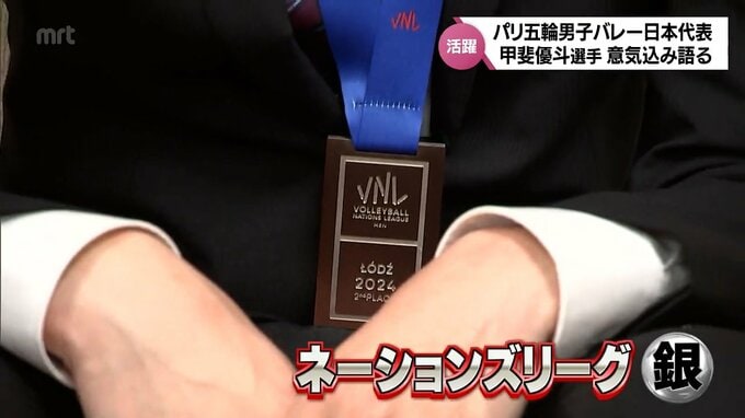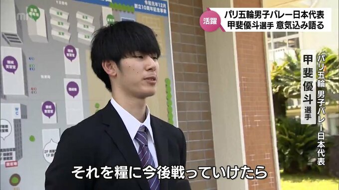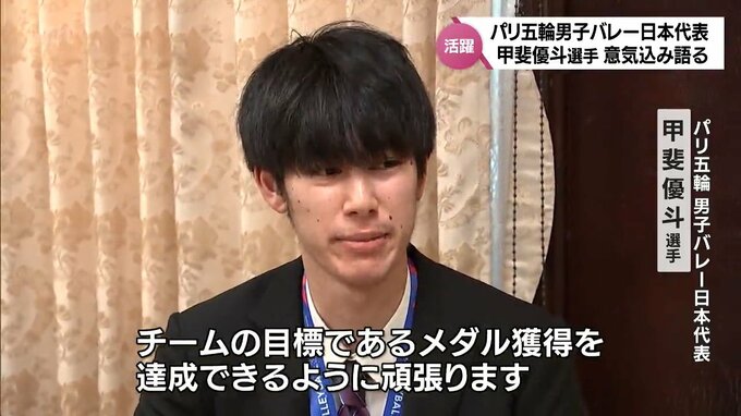 「パリオリンピックでは、自分の持ち味であるサーブだったり、スパイクというところでチームに貢献して、チームの目標であるメダル獲得という目標をしっかり達成できるように頑張っていきたいと思います」
