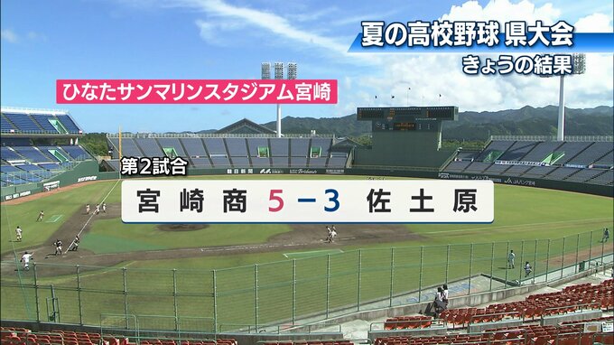 サンマリンスタジアムの第2試合は、第3シードの宮崎商業が5対3で佐土原に勝利しました。
