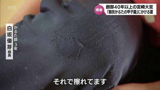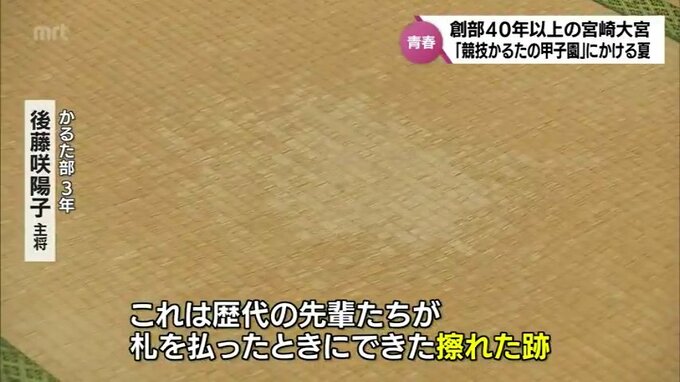 「これは、歴代の先輩たちが札を払ったときにできた、擦れた跡なんですけど、こういう跡がたくさんあるっていうことは、昔の先輩たちがいっぱいがんばって練習を積んできた証拠だと思っています」