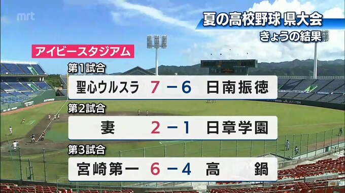 アイビースタジアムでは、第1試合で第7シードの聖心ウルスラが7対6で日南振徳に、第2試合では、妻が2対1で日章学園に、第3試合では、宮崎第一が6対4で高鍋に、それぞれ勝利し、3回戦進出を決めています。