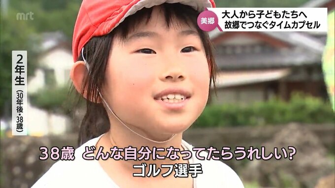 「30年後の自分へお手紙を書いた紙を入れました。(Q.38歳、どんな自分になってたらうれしいですか?)ゴルフ選手みたいな」