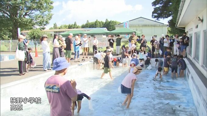 高原町の小学校で魚のつかみ取り大会 2024年7月21日(日) 17:57 国内 高原町の小学校で、児童や地域住民らが参加した魚のつかみ取り大会が開かれました。これは、来年度末に閉校する狭野小学校の子供たちに楽しい夏の思い出を作ってもらおうと、PTAが初めて企画したものです。学校の…