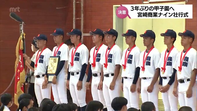 MRT SPORTS UP! 3年ぶり6度目 夏の甲子園出場 宮崎商業で野球部の壮行式 2024年7月29日(月) 17:25 国内 夏の高校野球宮崎県大会で優勝し、3年ぶり6度目の甲子園出場を決めた宮崎商業ナインの壮行式が高校で行われました。先週行われた夏の高校野球県大会の決勝で、富島との激戦を制し優勝した宮崎商業ナイン。高校で行…