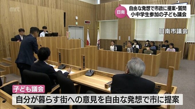 自由な発想で市政に提案を 日南市で「子ども議会」 2024年7月30日(火) 18:57 国内 宮崎県日南市では、子どもたちが市政に対し提案や質問を行う子ども議会が開かれました。これは、日南市内に住む小中学生に議会の仕組みを知ってもらい、自分が暮らす街への意見を自由な発想で市に提案してもらおう…