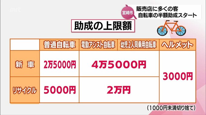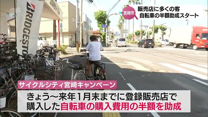 自転車の利用を促そうと、宮崎市は自転車の購入費用の半額を助成する事業を1日からスタートしました。